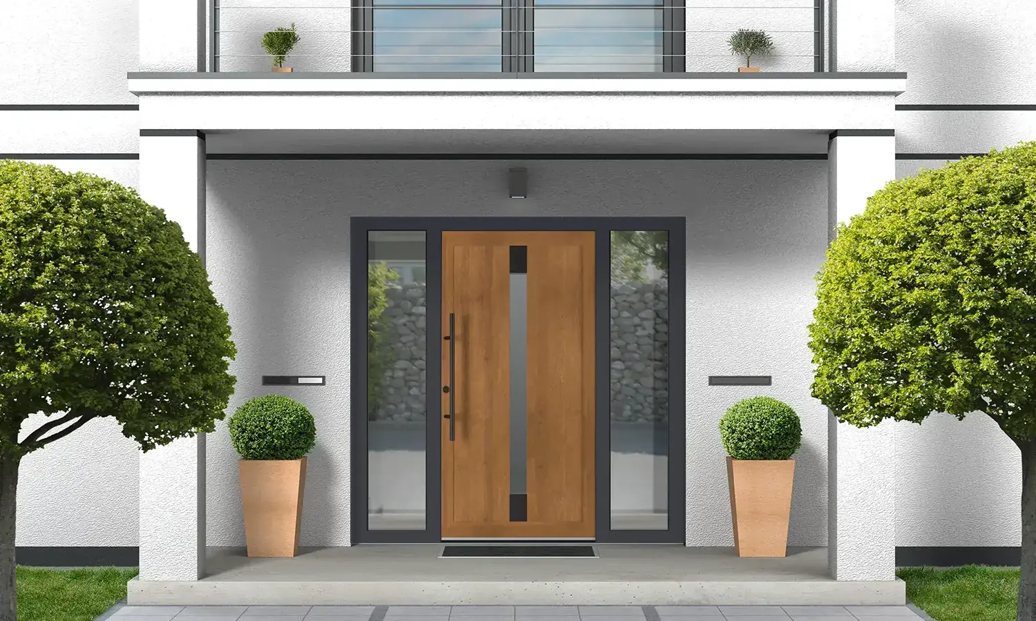 Les portes sans imposte ont un aspect minimaliste, sans obstacles optiques supplémentaires. Les portes avec fenêtre latérale en verre sont dotées d'élégants panneaux vitrés qui introduisent de la lumière naturelle et de l'espace dans la pièce. Les portes à fenêtres latérales pleines se caractérisent par une finition solide, constituant à la fois un élément esthétique et limitant la lumière.