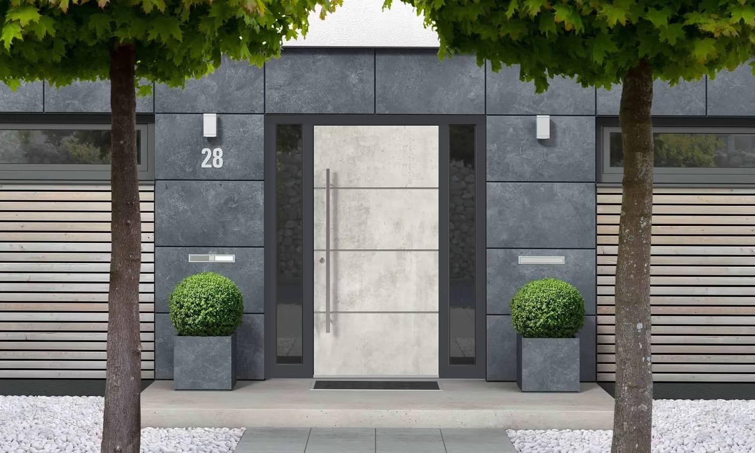 Les portes sans imposte ont un aspect minimaliste, sans obstacles optiques supplémentaires. Les portes avec fenêtre latérale en verre sont dotées d'élégants panneaux vitrés qui introduisent de la lumière naturelle et de l'espace dans la pièce. Les portes à fenêtres latérales pleines se caractérisent par une finition solide, constituant à la fois un élément esthétique et limitant la lumière.