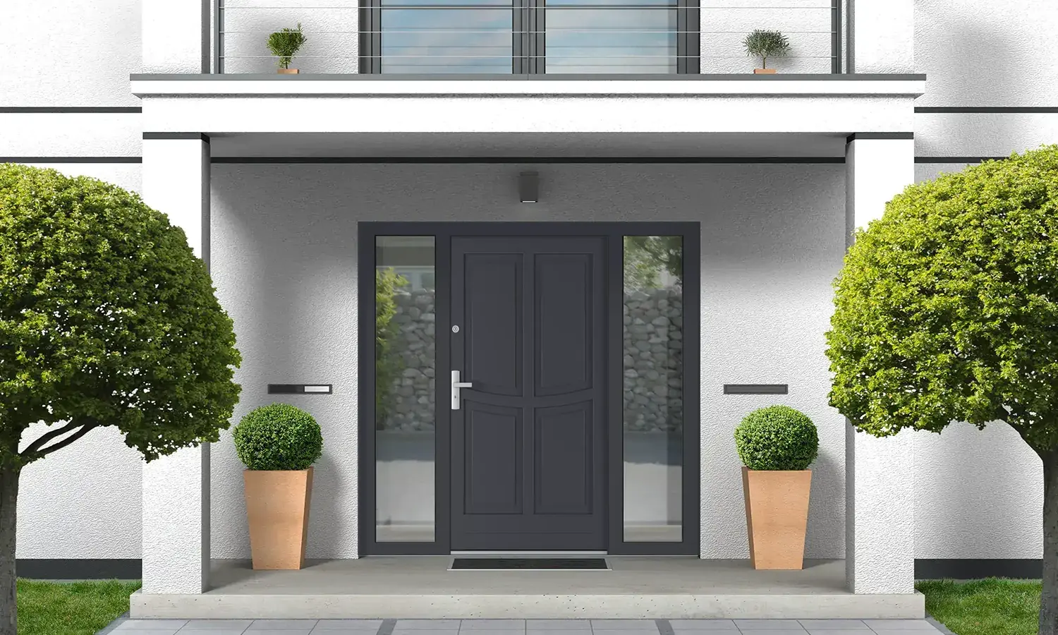 Les portes sans imposte ont un aspect minimaliste, sans obstacles optiques supplémentaires. Les portes avec fenêtre latérale en verre sont dotées d'élégants panneaux vitrés qui introduisent de la lumière naturelle et de l'espace dans la pièce. Les portes à fenêtres latérales pleines se caractérisent par une finition solide, constituant à la fois un élément esthétique et limitant la lumière.