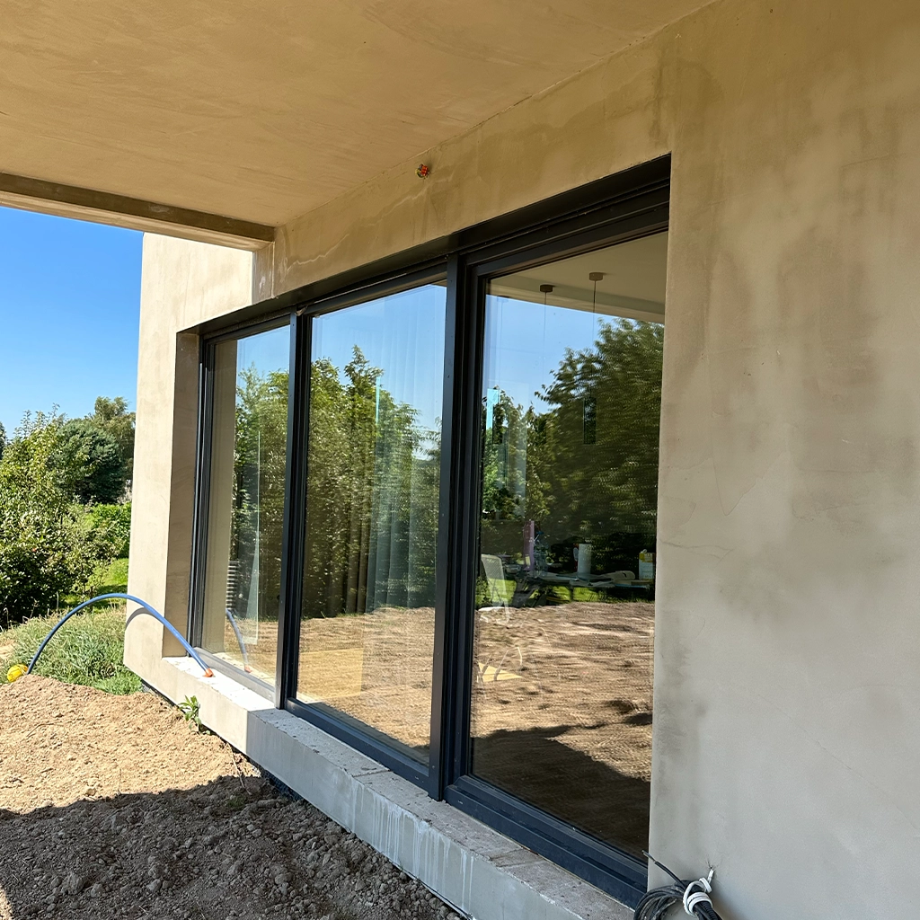 Des éléments supplémentaires tels qu'un dispositif de blocage du désalignement de la poignée et un frein dans la poignée augmentent la fonctionnalité et la sécurité. Ces solutions sont complétées par des volets roulants dissimulés en gris anthracite, qui renforcent l'isolation et protègent l'intimité des occupants.