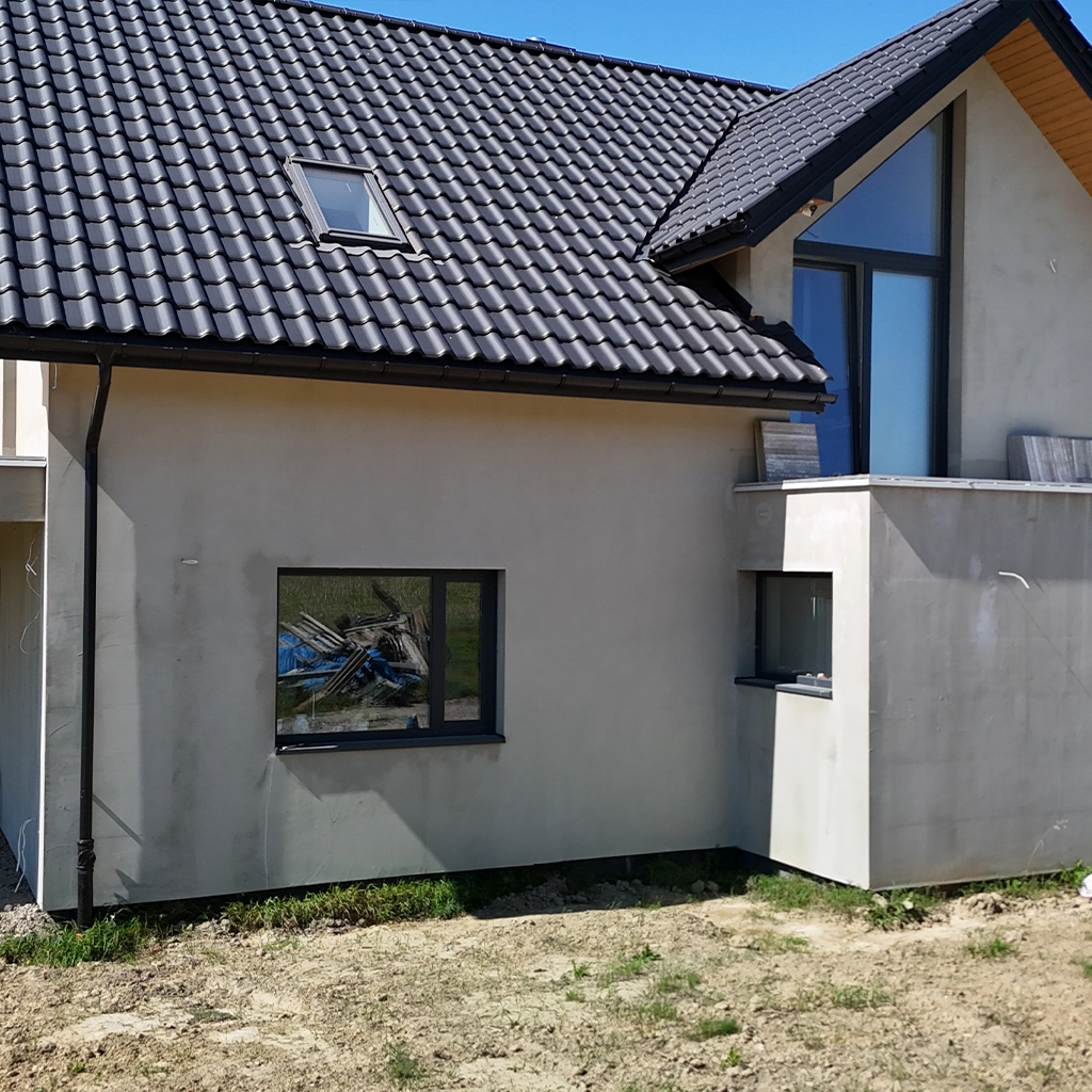 La conception d'une maison confortable dans une banlieue tranquille bénéficie de solutions de fenêtres modernes qui offrent confort, sécurité et une excellente isolation thermique. L'utilisation du système de fenêtres PVC Ideal 7000 d'Aluplast en blanc et gris anthracite enrichit non seulement l'esthétique de la maison, mais contribue également à l'efficacité énergétique du bâtiment.